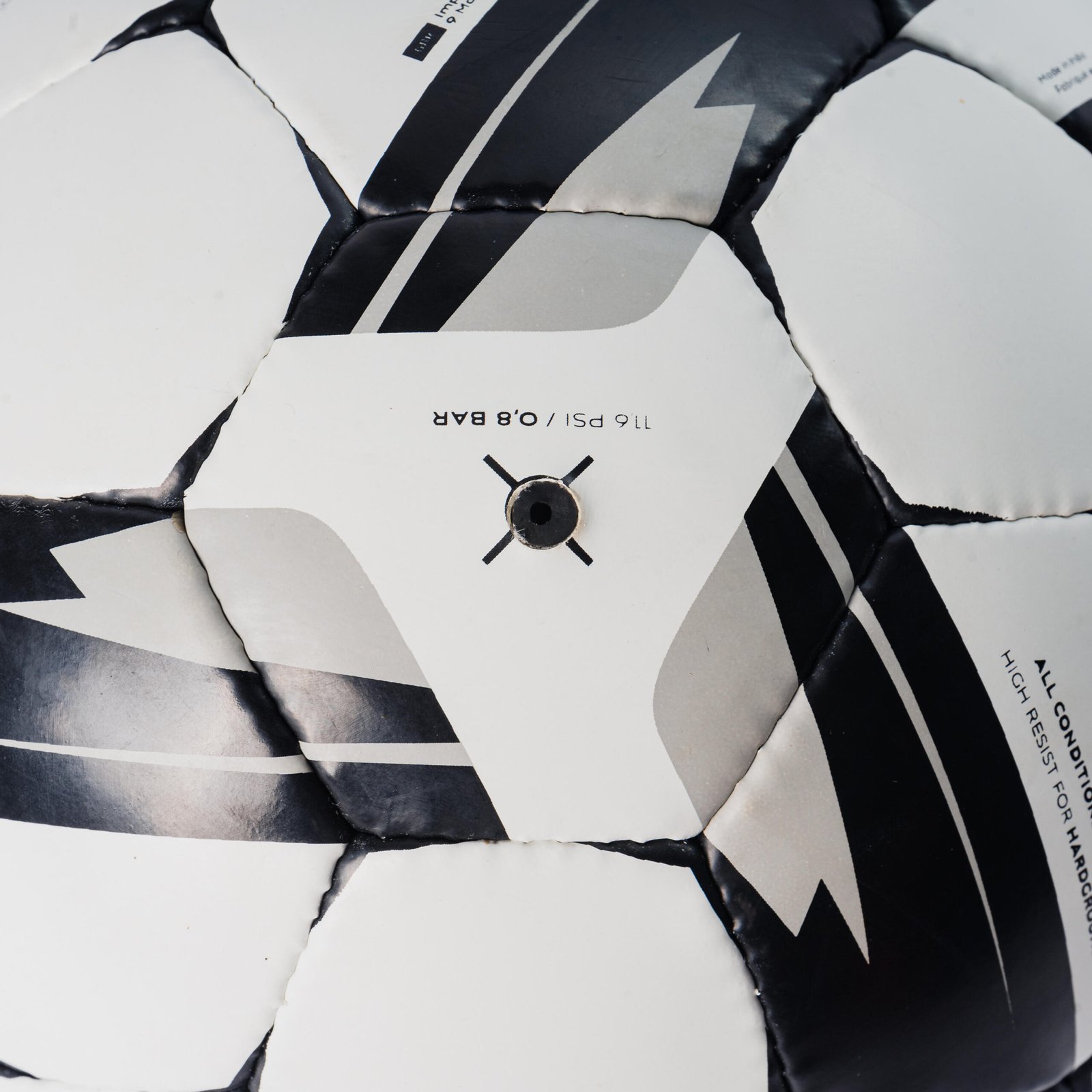 | Great pressure retention for a great game! | We inflate the ball to the recommended pressure of 0.8 bar. After 72 hours, its pressure must have decreased by no more than 15% (around 0.1 bar), ensuring that the remaining pressure is around 0.7 bar. This means that it’s perfectly normal for the ball to lose a little pressure over a few days. Pump it back up regularly to keep it in good condition. |